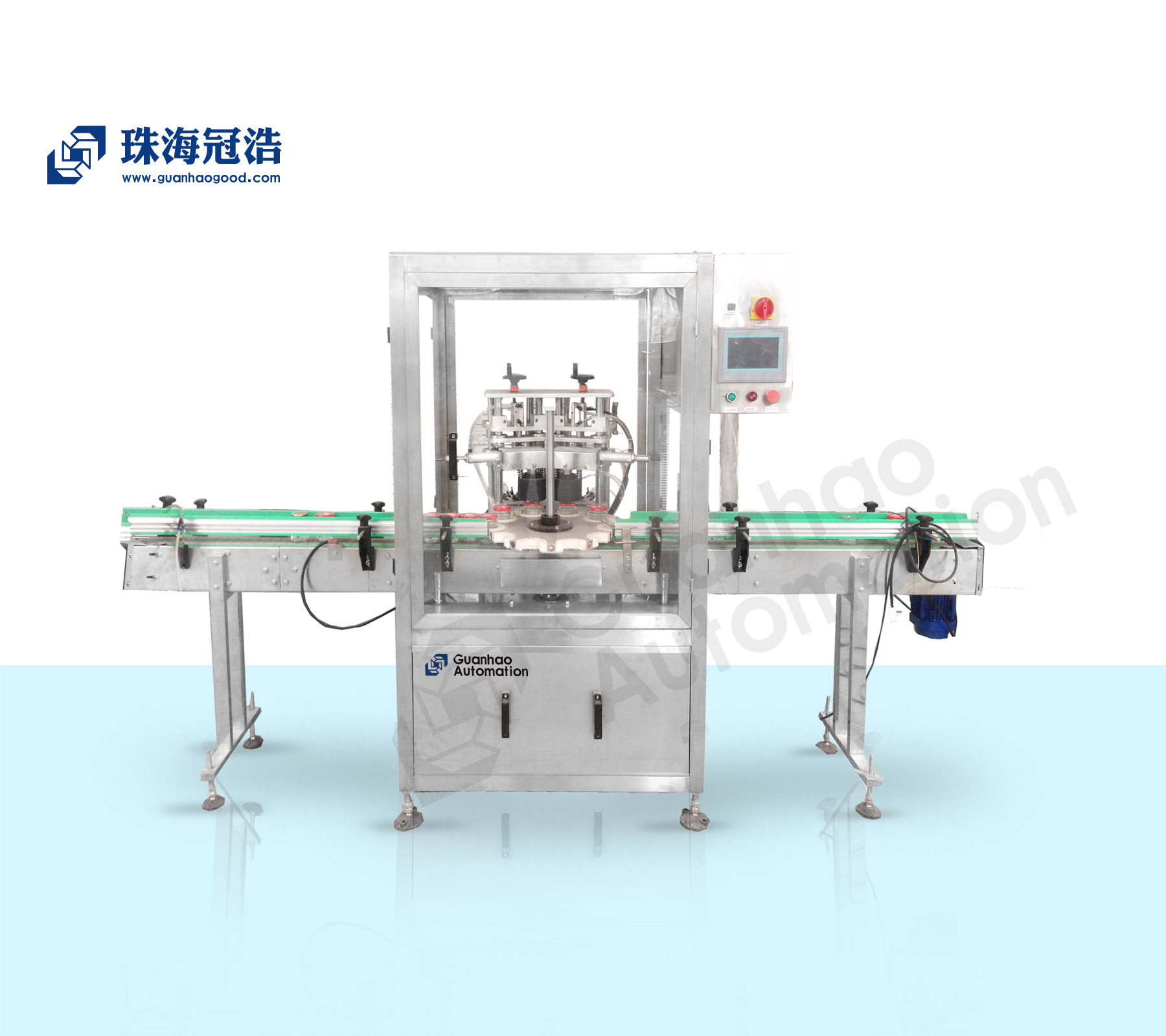 珠海冠浩機械全自動雙頭抽真空旋蓋機,是我司引進國外原理和技術(shù),結(jié)合自身多年的生產(chǎn)經(jīng)驗研制而成,該機集自動理蓋、自動上蓋、自動抽真空旋蓋于一體,生產(chǎn)速度快,效率高,運行穩(wěn)定可靠。該機適用性強可選用圓形、方形、各種異形瓶等,更換不同規(guī)格的瓶子、蓋子只需簡單調(diào)整,操作方便,是一款理想的三四旋蓋玻璃瓶自動旋蓋設(shè)備。